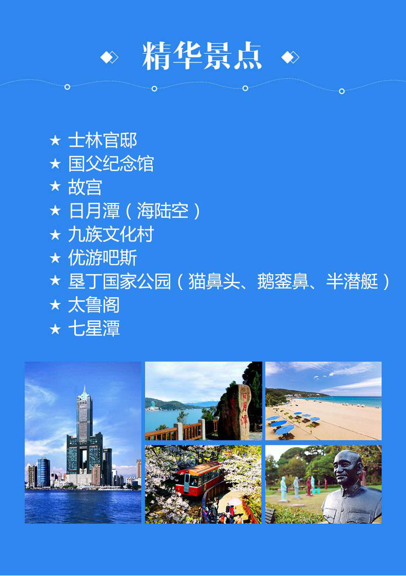 2. 行程中所标明台湾当地酒店双人标准间住宿及早餐,一晚特色农场,一晚特色车汽旅馆
