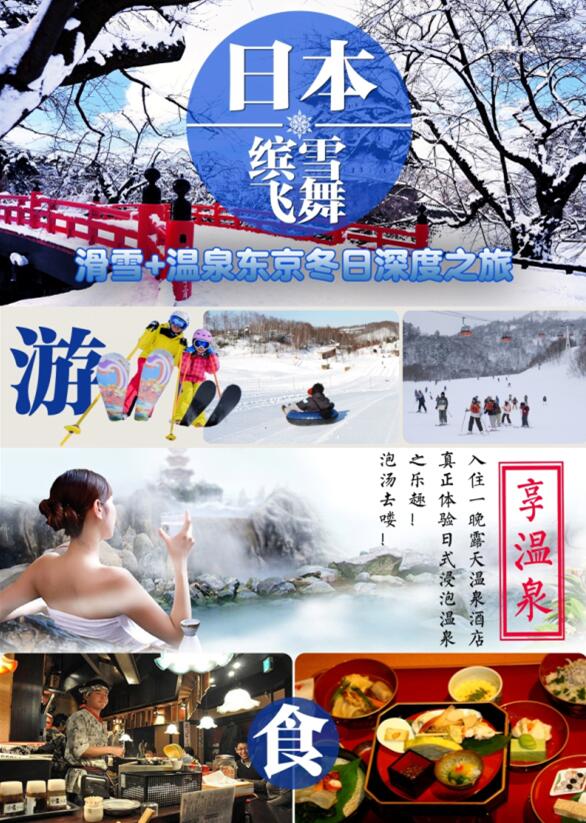 【富士山五合目】富士山是世界最美丽的高峰之一。白雪皑皑的山顶,是日本人津津乐道的话题。还有原始森林、瀑布和山地植物.一年四季不但自然景色抚媚之至。 (如因天气原因和路况原因不能登上五合目,该景点改为忍野八海) 【河口湖畔】是五湖中开发最早的,又由于交通方便,故成为五湖的观光中心。湖中最有名的鹈岛,是五湖中唯一的岛屿,岛上有神社,专门保佑孕妇安产。湖上也有长达1260米的跨湖大桥。河口湖位于河口湖镇——一个以这个湖命名的温泉胜地。河口湖镇中心和温泉旅馆中有些浴室可以看到富士山的美景,它们都集中在湖岸的东南边。 【GRINPA森林公园】(约120分钟, 含入园门票+雪盆+雪上轮胎+餐券,其他滑雪项目滑雪手套+滑雪服+滑雪杖需自理)大地笼罩着白雪,寒冷低温却挡不住想玩雪的心情,特别安排GRINPA滑雪场,在此不只享受滑雪盆的速度快感,在风光明媚的富士山山脚下,堆雪人更有一番风味。 *滑雪场开放日期由2014/12/15至2015/3/10期间, 如因雪量不足或天气原因滑雪场停开, 行程将自动改为前往【御殿场奥特莱斯】(约60分钟) *代替不退任何费用, 敬请知晓! 【御殿场奥特莱斯】日本最大的名牌折扣店,坐落于风景优美的自然环境中,可眺望富士山,拥有欧风式的建筑外观。 |